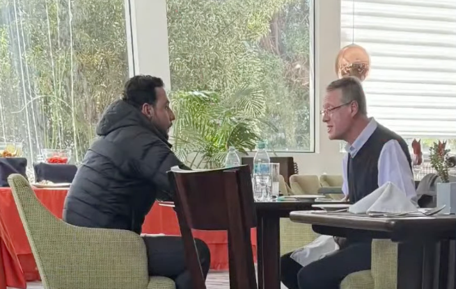 Durante el programa POV del canal UNITEL, se exhibió una imagen que captó un significativo momento político: una reunión informal entre Jaime Dunn y JP Velasco, candidato a la vicepresidencia por la alianza Libre (fórmula de Jorge Tuto Quiroga), sostenida en un café de La Paz.
